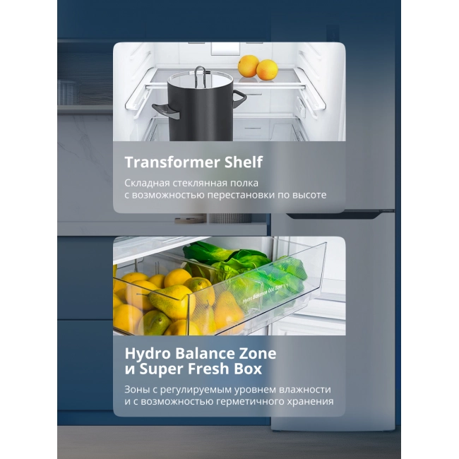 В сосуде Hydro Balance Zone с регулируемым уровнем влажности и с возможностью герметичного хранения, овощи, фрукты и зелень сохраняют свой вкус и сочность намного дольше