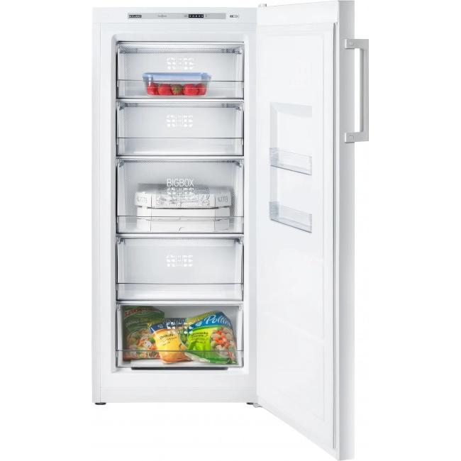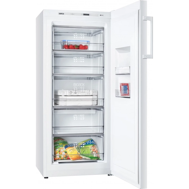 Морозильник выделяется элегантным дизайном в стиле хай-тек и вместительным объемом. Оснащен электронной панелью Touch Control и экономичным LED-освещением. Внутри — 5 корзин. Функция «Суперзамораживание» обеспечивает быстрое и качественное замораживание. Все эти особенности делают использование морозильника практичным и комфортным для больших семей и любителей заготовок.