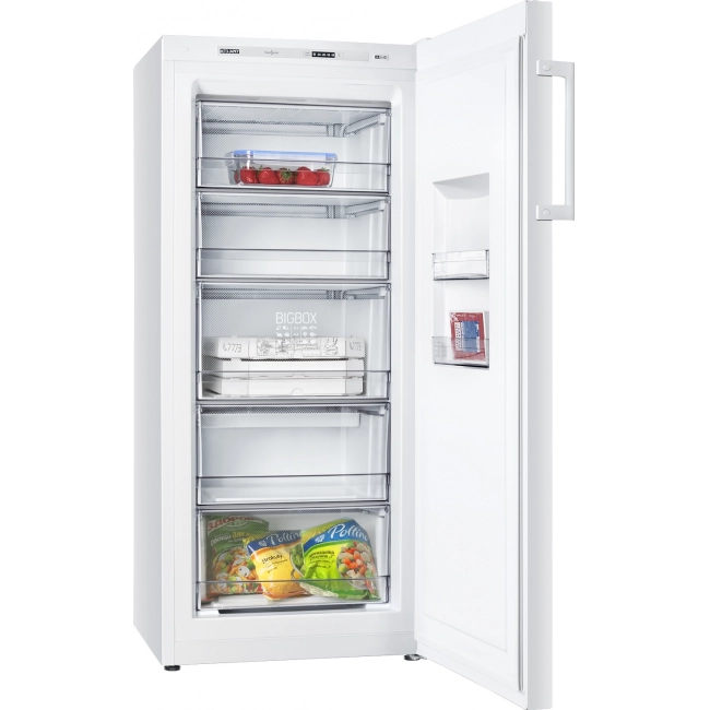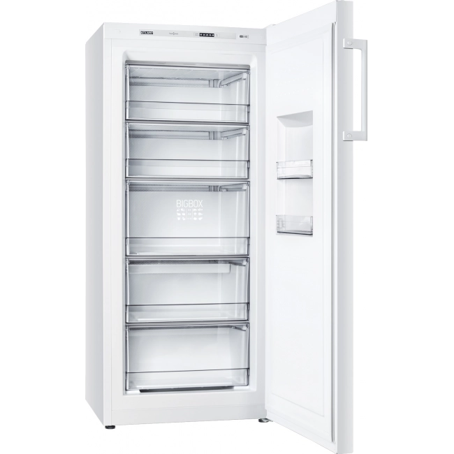 Морозильник выделяется элегантным дизайном в стиле хай-тек и вместительным объемом. Оснащен электронной панелью Touch Control и экономичным LED-освещением. Внутри — 5 корзин. Функция «Суперзамораживание» обеспечивает быстрое и качественное замораживание. Все эти особенности делают использование морозильника практичным и комфортным для больших семей и любителей заготовок.