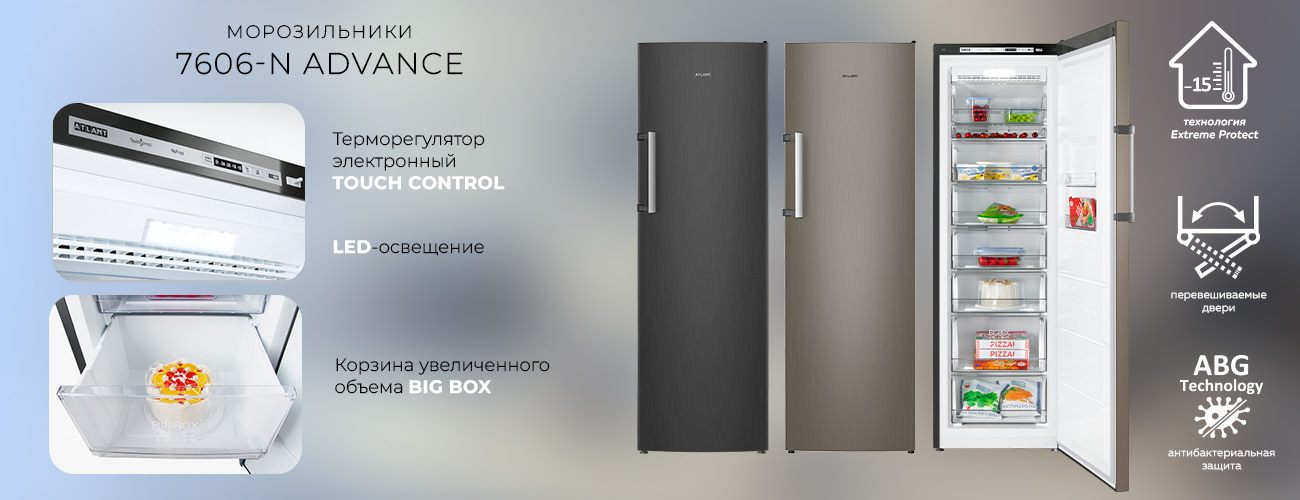 · Серия ADVANCE (М-7606): Вершина технологий. Если вы ищете морозильная камера Атлант ноу фрост, то это серия ADVANCE. Модель морозильная камера Атлант 7606 с системой No Frost избавит вас от необходимости ручного размораживания .