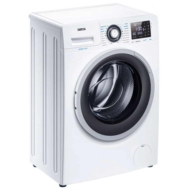 Новая стиральная машина ATLANT серии INTENSE EXPERT имеет уникальный дизайн, который прекрасно дополнит любой интерьер своим внешним видом. С помощью новых сенсорных технологий достаточно легкого касания для выбора функций и программ. Светодиодные индикаторы и сегментный дисплей машины размещены на панели управления под небольшим углом, что облегчает визуальное восприятие отображаемой информации о работе машины. Благодаря интеллектуальным программам она не только интуитивно понятна в управлении, но и обеспечивает превосходные результаты стирки при низком потреблении воды и электроэнергии. Кроме того, действует увеличенная гарантия 5 лет на двигатель.